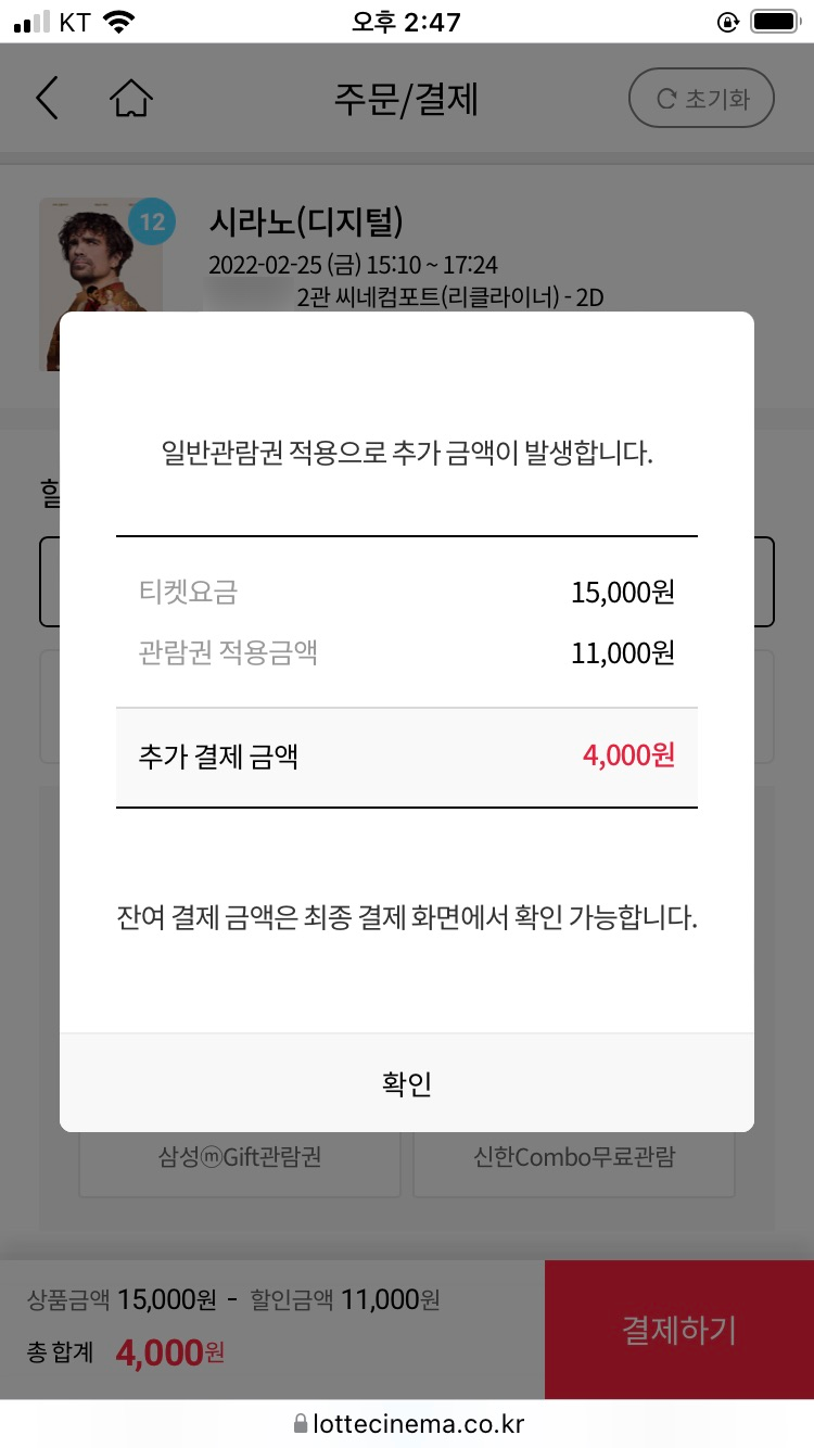관람권 적용했는데 추가결제 실화???????????